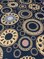 Black and Gold Baroque Pattern Luxury Chain Print Fabric by Metre - Crepe