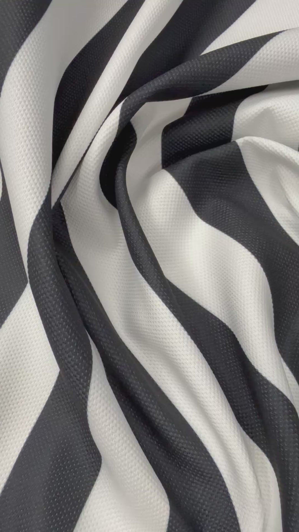 Timeless black and white stripe upholstery fabric with a durable, smooth finish. Perfect for chairs, cushions, headboards and stylish contemporary home décor. Sold by the metre.