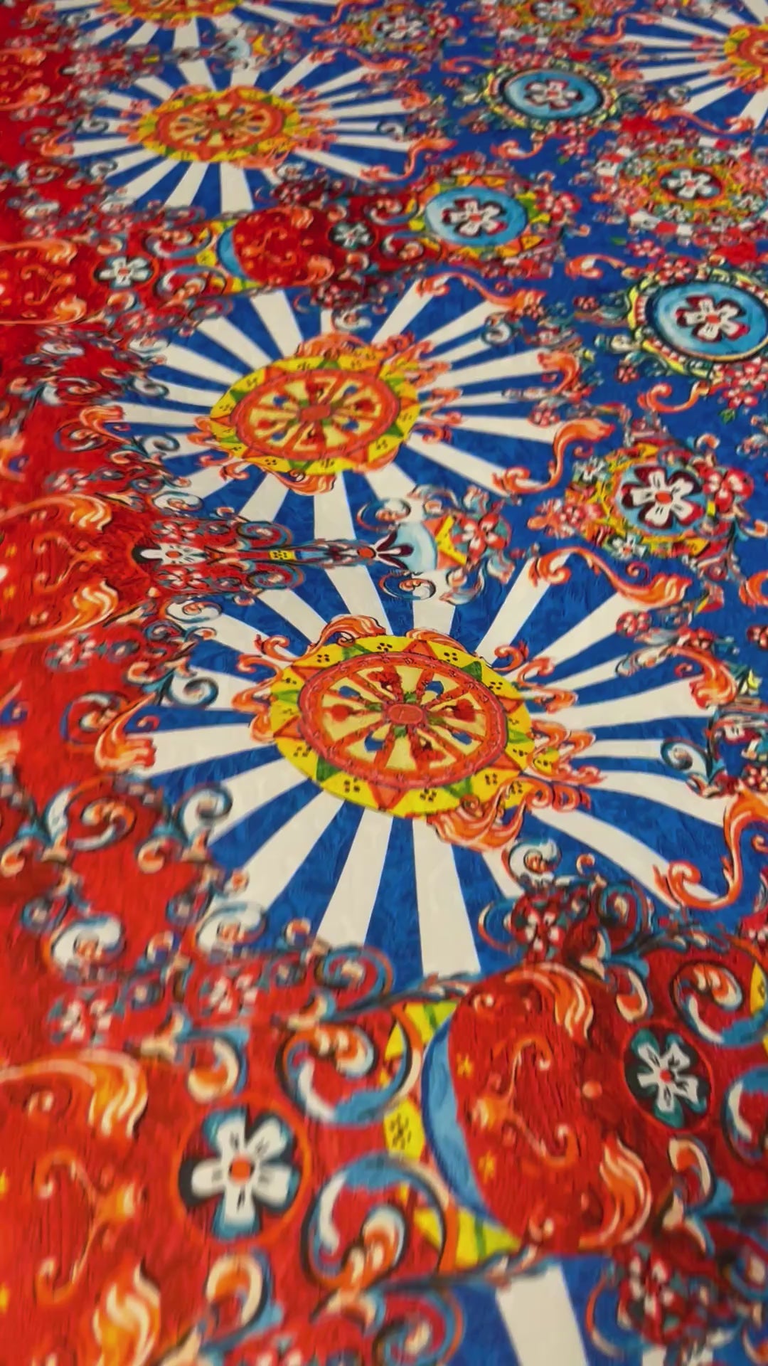 Mediterranean Carnival Print Crepe Fabric by the Metre – Vibrant Style