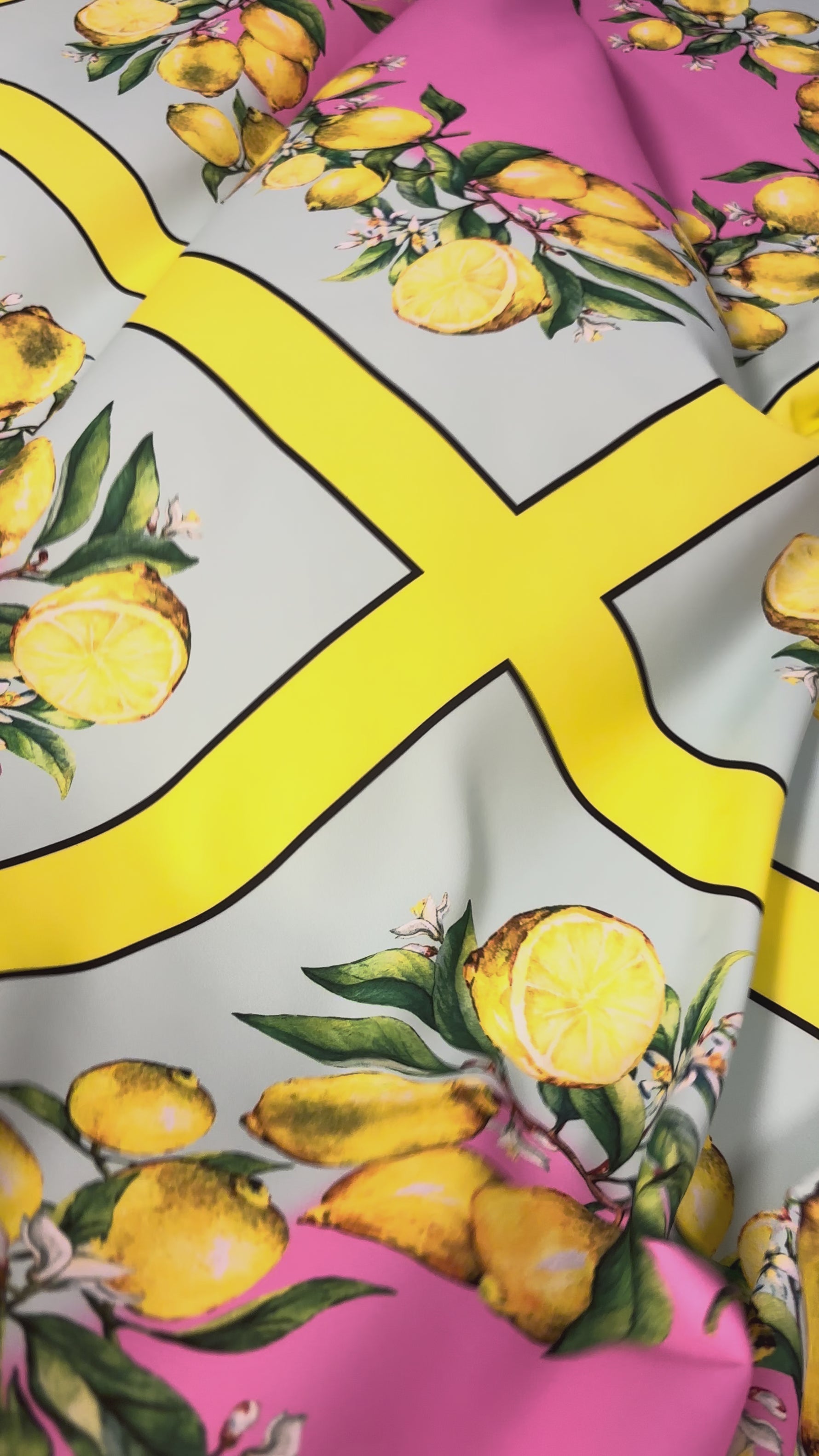 Pink Lemon Print Satin Fabric by the Metre – Mediterranean Summer