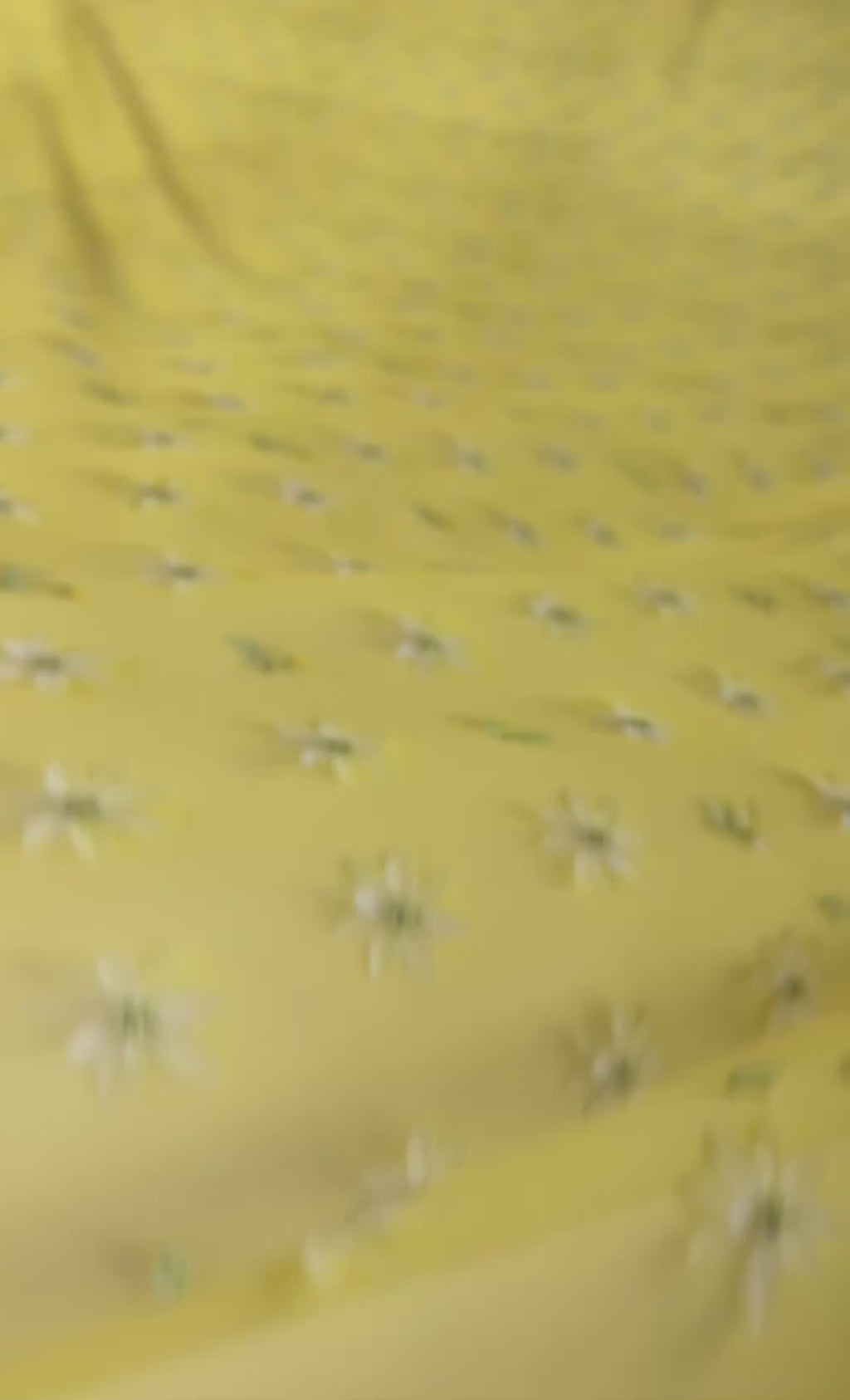 Lightweight chiffon fabric with delicate mini floral motifs on a warm mustard base. Ideal for dresses, blouses and airy layering pieces. Sheer texture, soft flow and elegant movement. Sold by the Metre.
