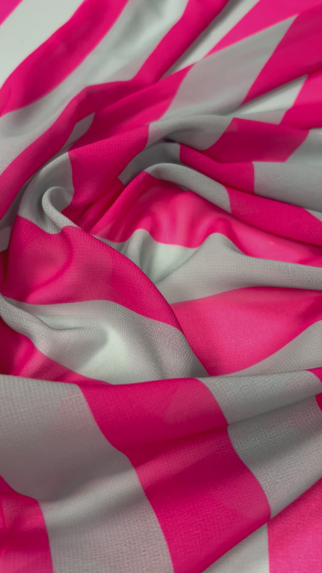 Lightweight chiffon with fresh pink and mint stripes and a soft drape. Perfect for flowing dresses, blouses, scarves and summer fashion. Sold by the metre.