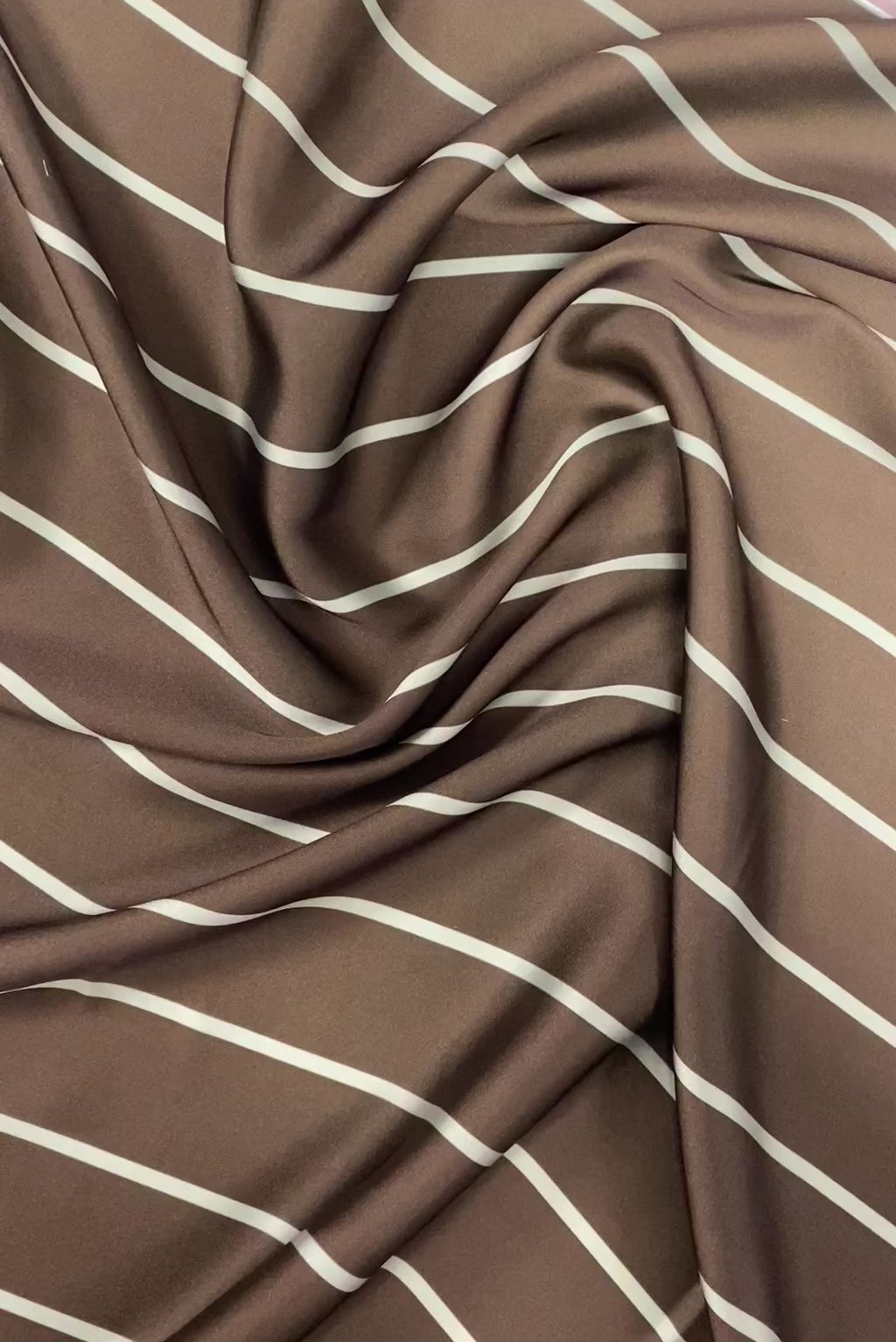 Elegant brown fabric with fine cream stripes. Perfect for tailored shirts, dresses, or classic home decor accents.