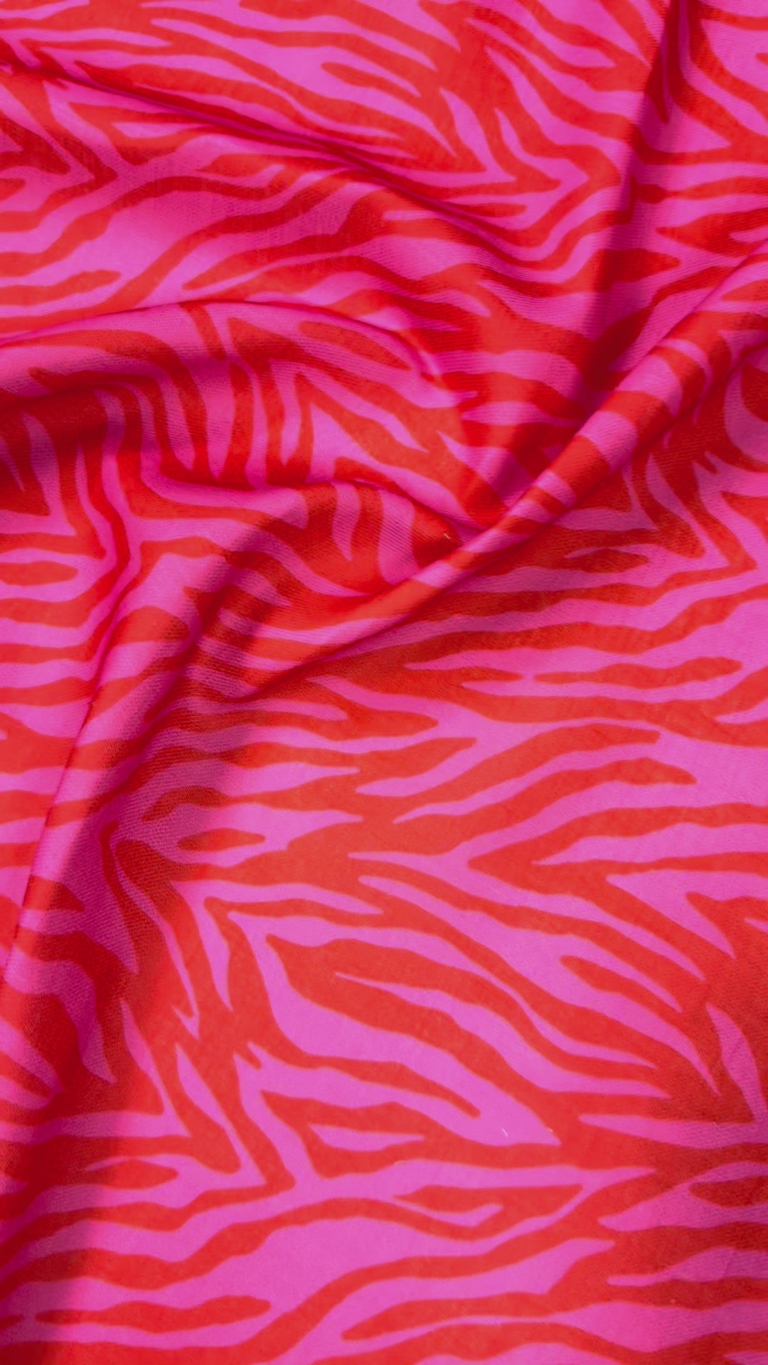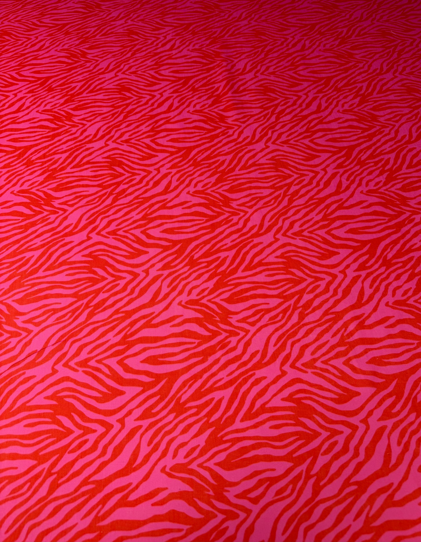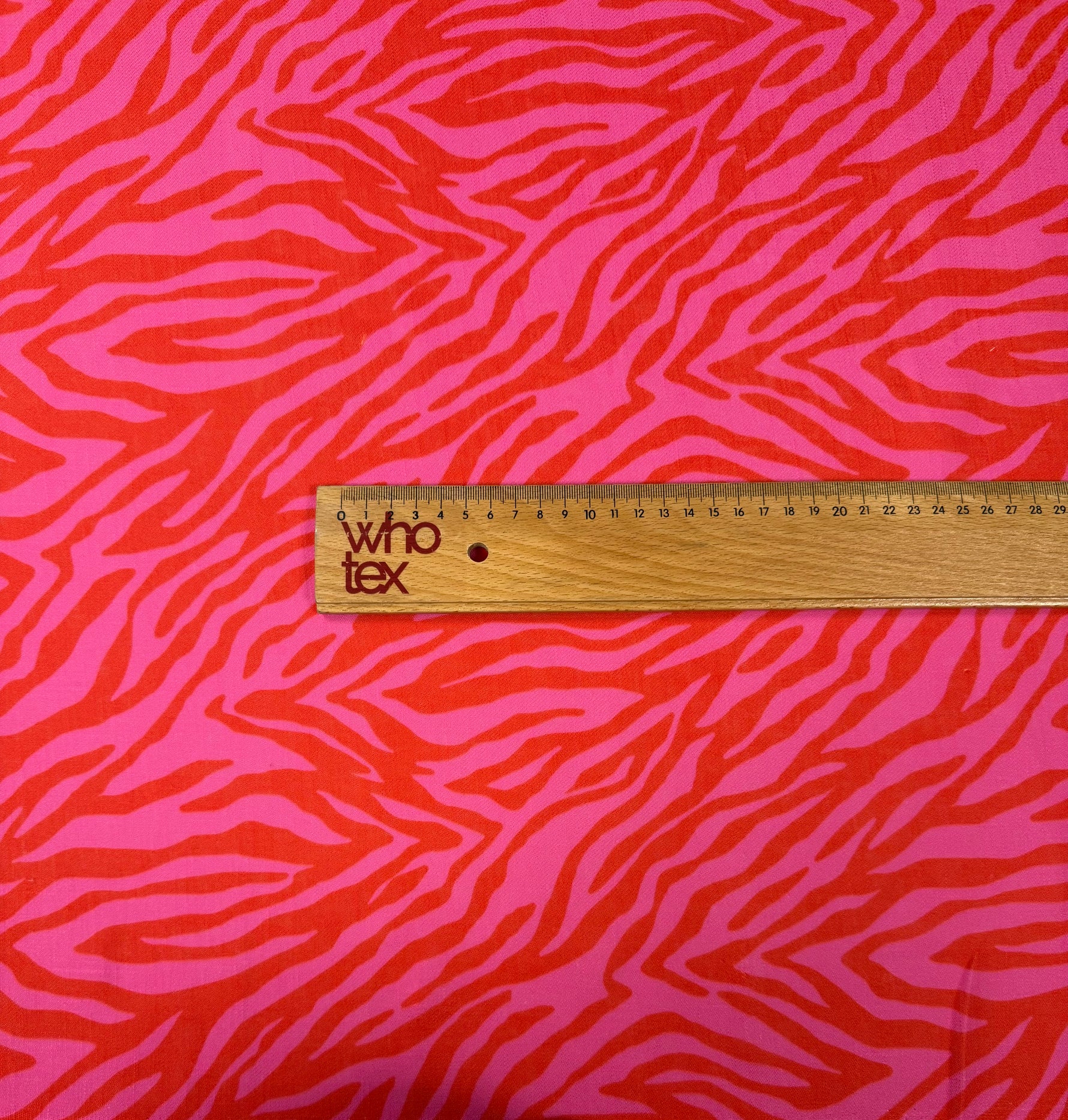 Vibrant linen fabric with a bold pink and red zebra print. Breathable, natural and perfect for dresses, shirts, summer outfits and creative sewing projects. Sold by the metre.