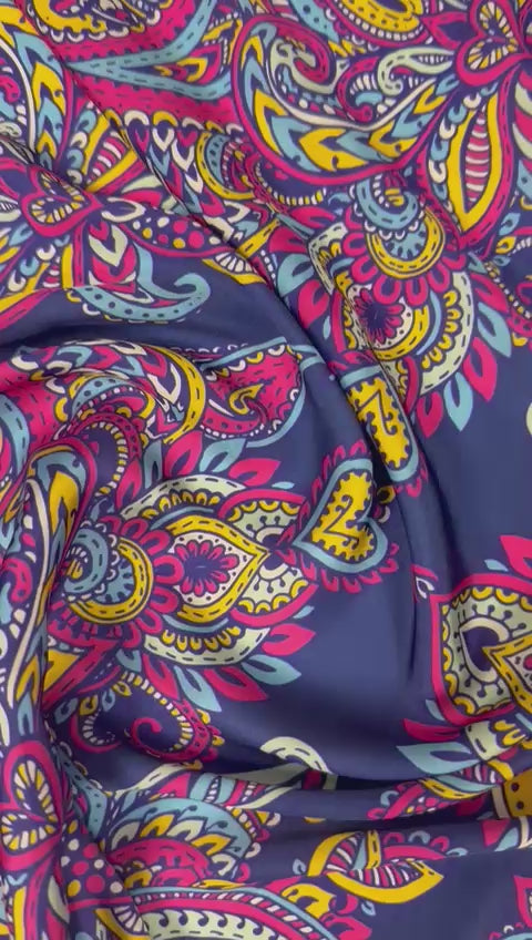 Vibrant Bohemian Paisley Fabric – Custom Printed Fabric on Satin, Crepe, Spandex or Chiffon