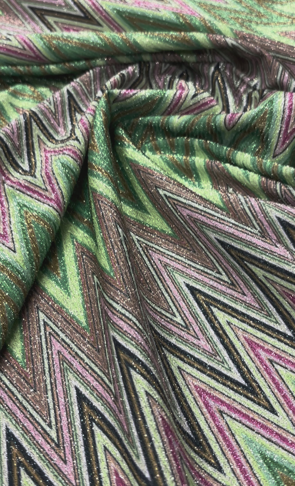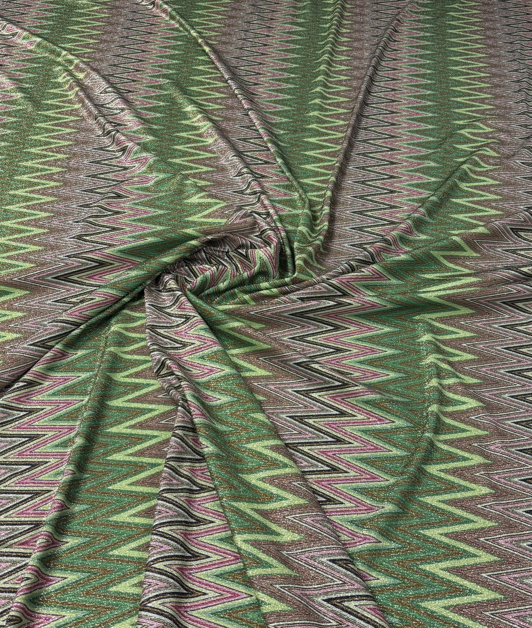 Green Zigzag Lurex Knit Fabric