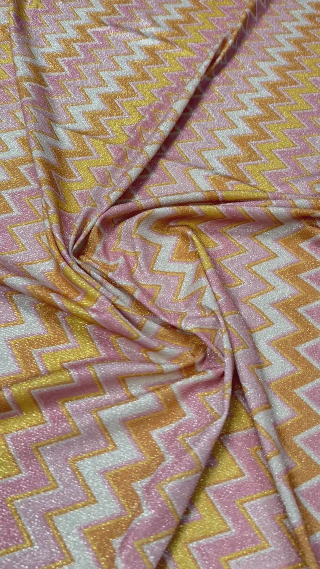 Pink Yellow Zigzag Lurex Fabric with Shine by the Metre