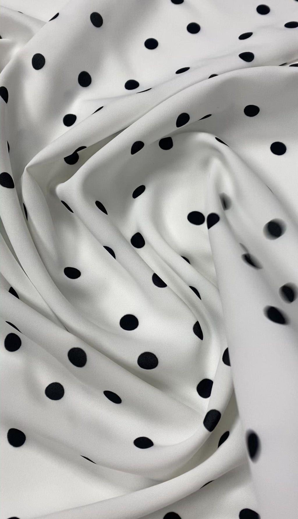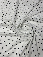 Black Polka Dot Fabric on White Background by the Metre – Elegant black dots on crisp white fabric, perfect for dressmaking, crafts, and décor. Choose your ideal fabric option.