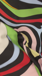 Bold multicolour abstract wave print fabric with a striking retro-inspired design. Perfect for dresses, shirts, skirts and statement fashion pieces. Sold by the Metre.