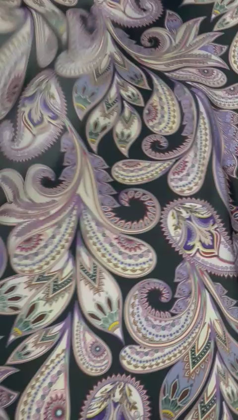 Luxurious paisley fabric with a soft drape and intricate detail. Perfect for dresses, blouses, and home decor. Sold by the metre.