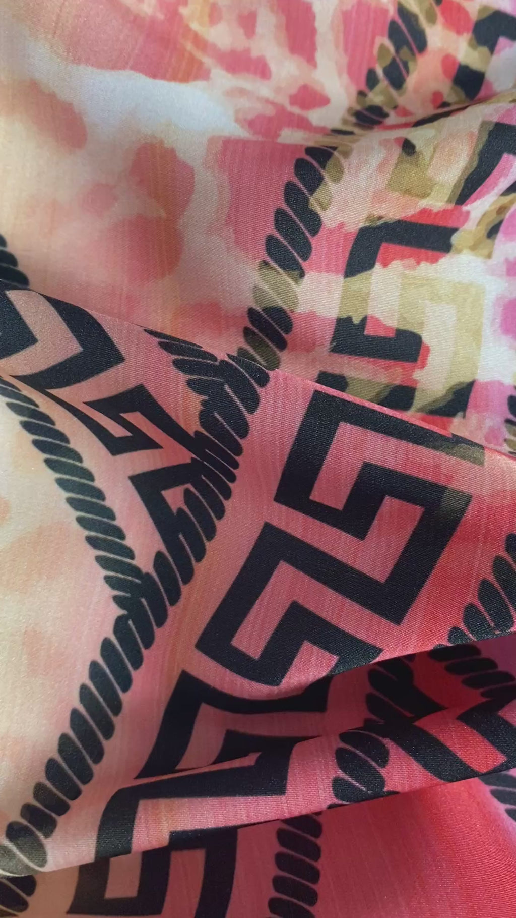 Pink Abstract Greek Key Fabric – Leopard & Stripe Design by the Metre