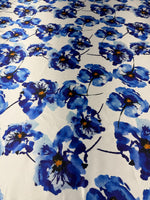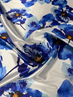 Blue Floral Lycra Satin Fabric by the Metre
