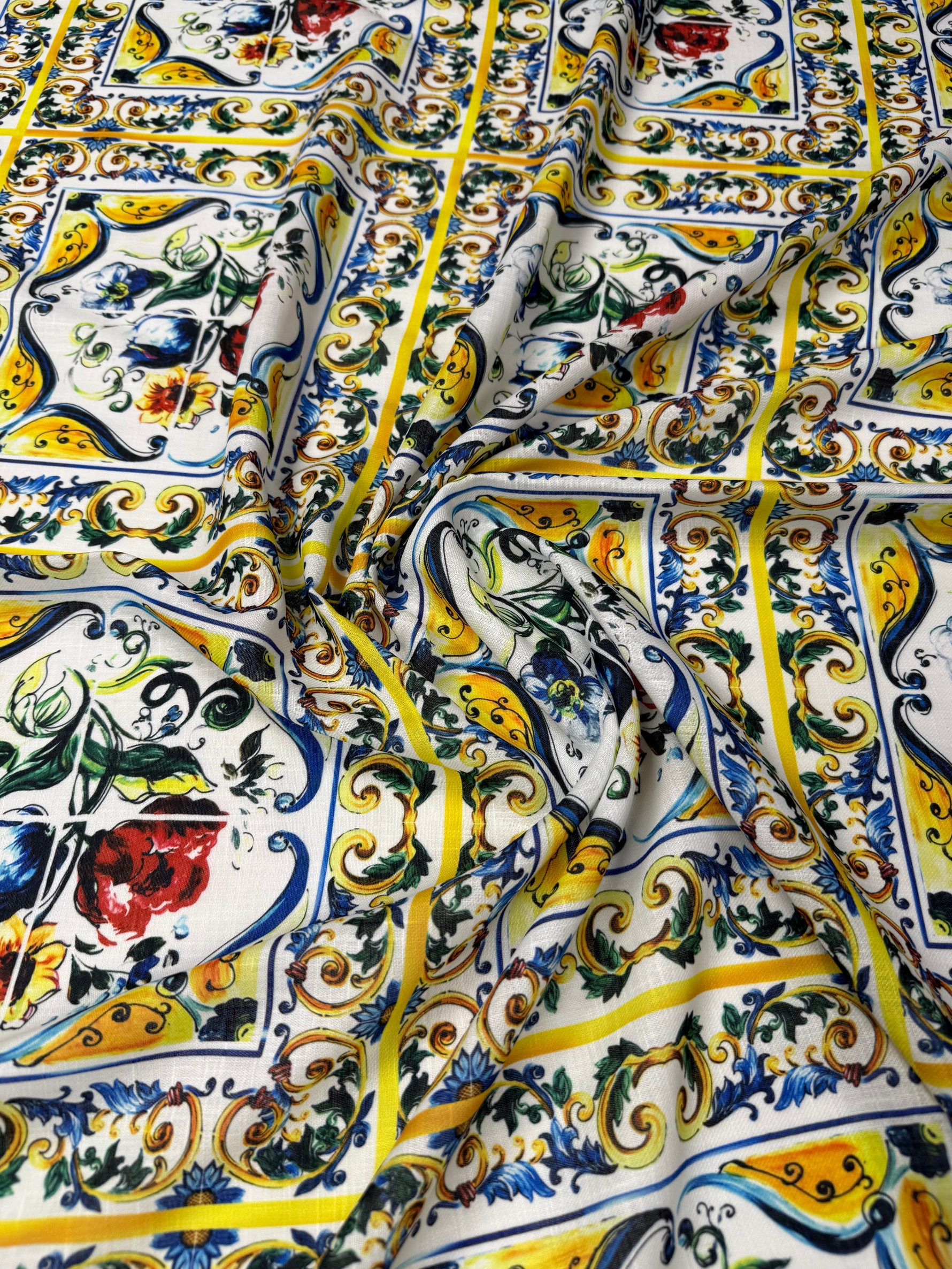 Discover our Blue and Yellow Floral Majolica Pattern Fabric, perfect for adding a vibrant touch to your projects. This fabric features a beautiful floral design inspired by traditional majolica art. It is versatile and suitable for various applications, including upholstery, curtains, and crafts. Enjoy the quality and charm of this unique fabric in your next creation.