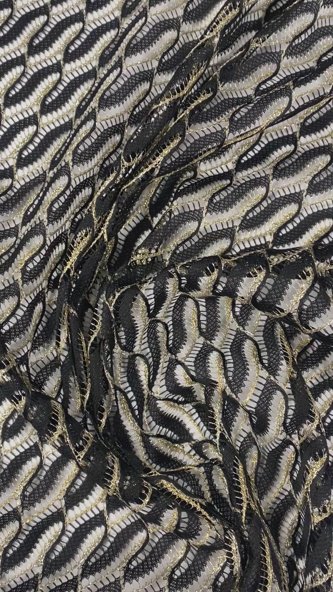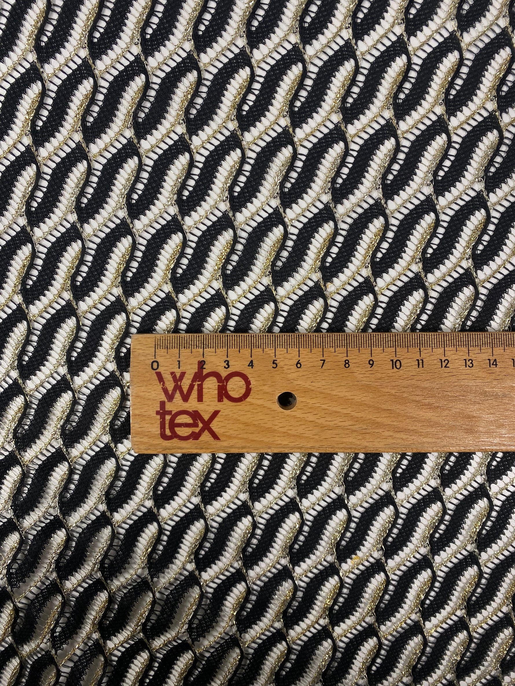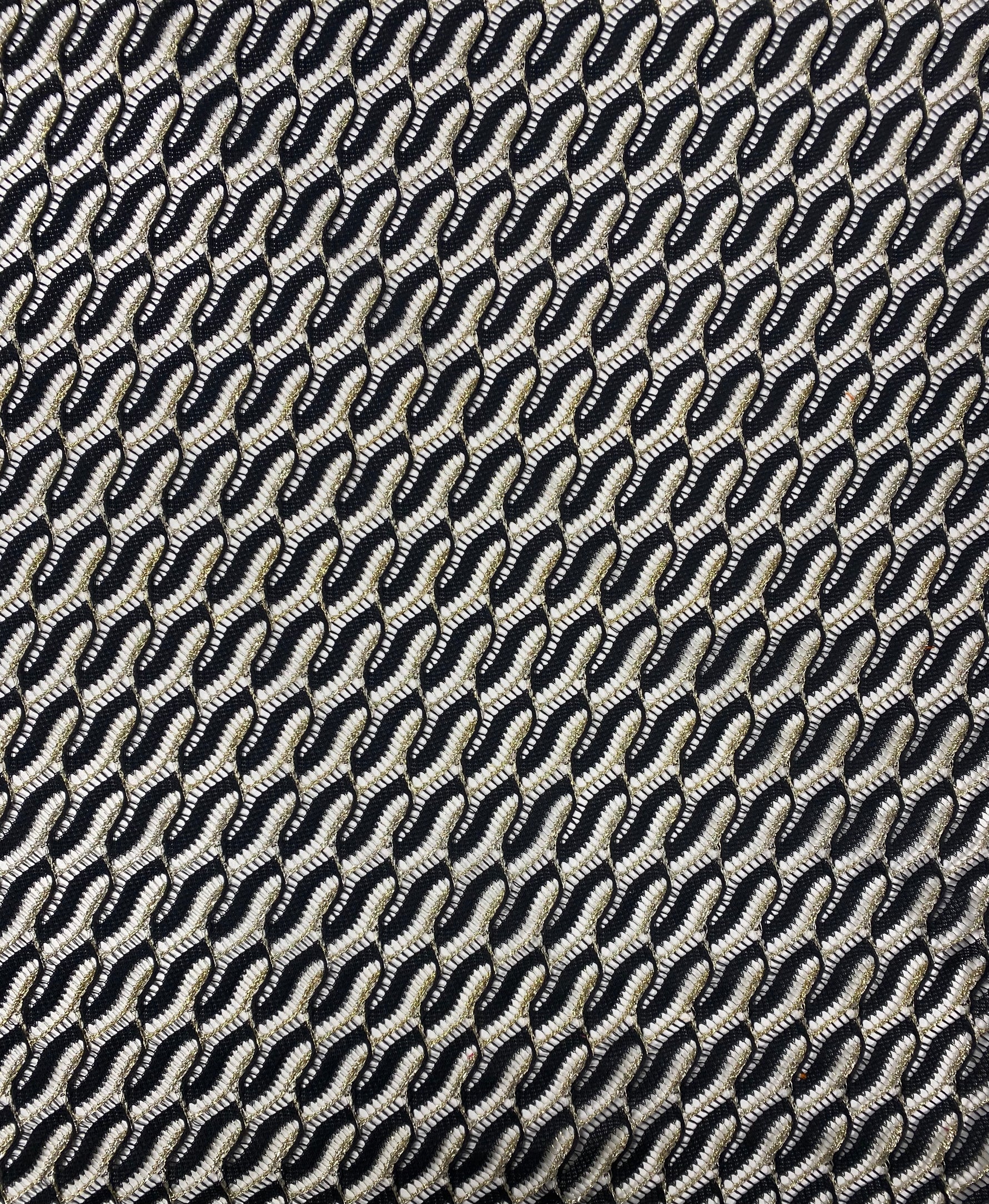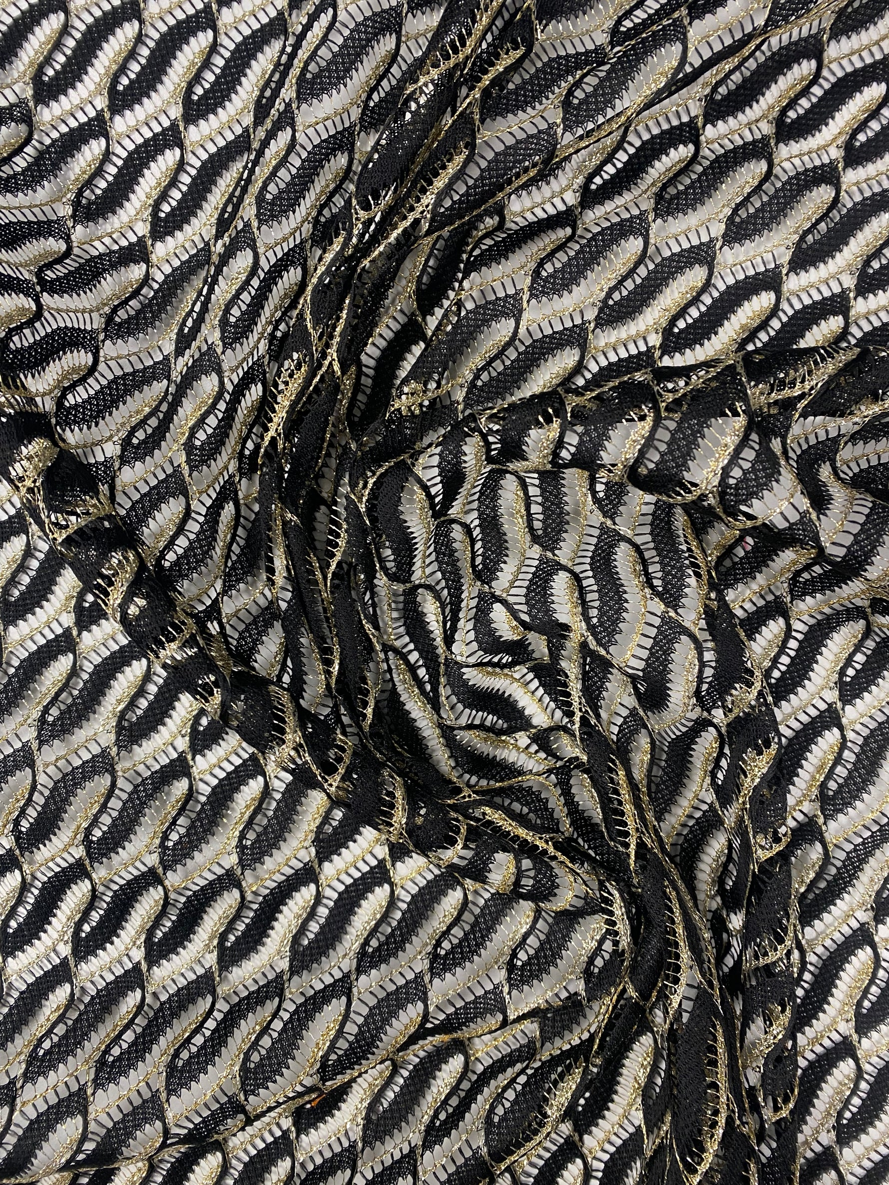 Black Wave Openwork Mesh Knit Fabric with Metallic Thread by the Metre