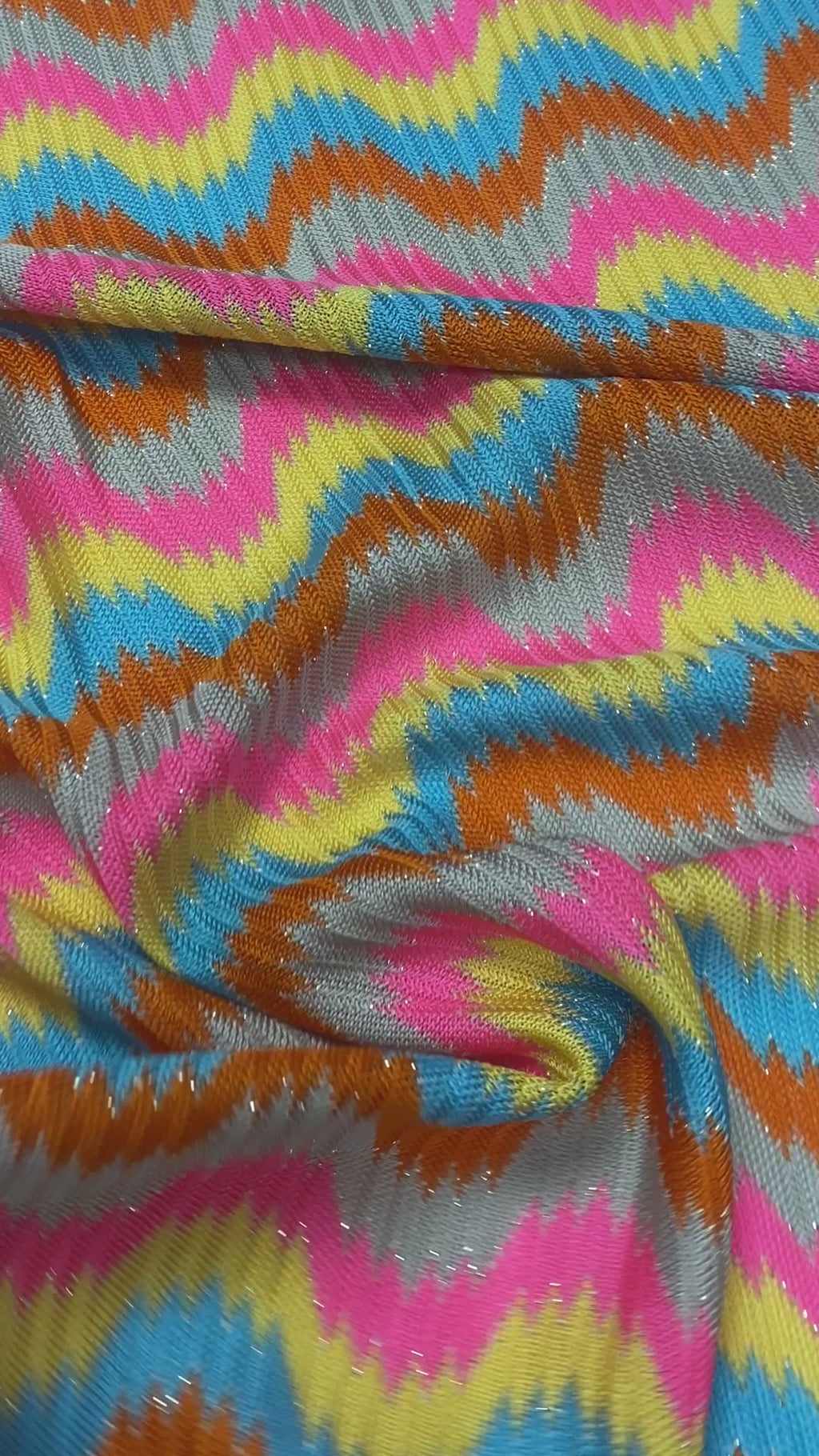 Rainbow Wave Mesh Knit Fabric by the Metrte