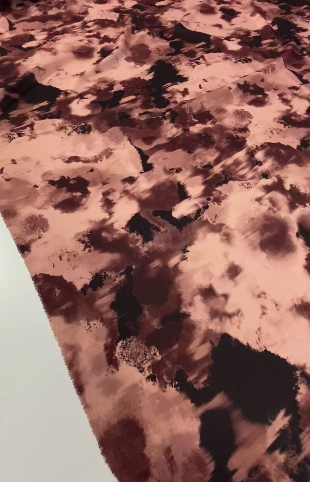 Abstract Brown & Black Crepe Fabric by the Metre. Sold by the metre, ideal for dressmaking, blouses, skirts and elegant fashion projects.