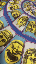 Ancient Greek Mask Print Satin Fabric by the Metre