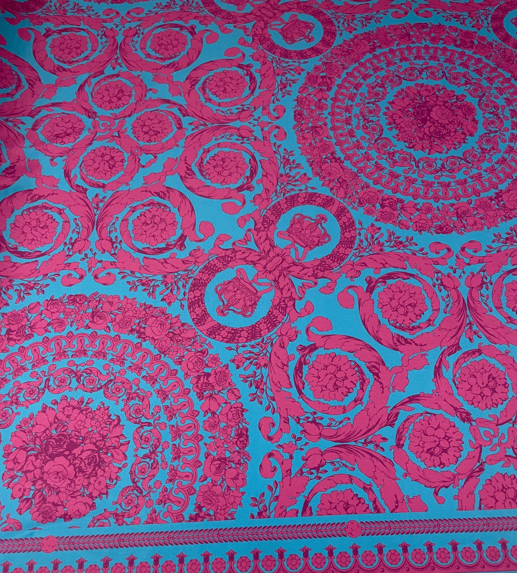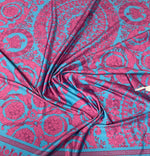 Baroque Floral Spandex Fabric Turquoise Pink by the Metre