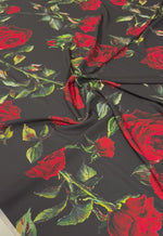 Black and Red Floral Rose Pattern Fabric for Sewing and Crafts – Custom Printed Fabric on Satin, Crepe, Spandex or Chiffon