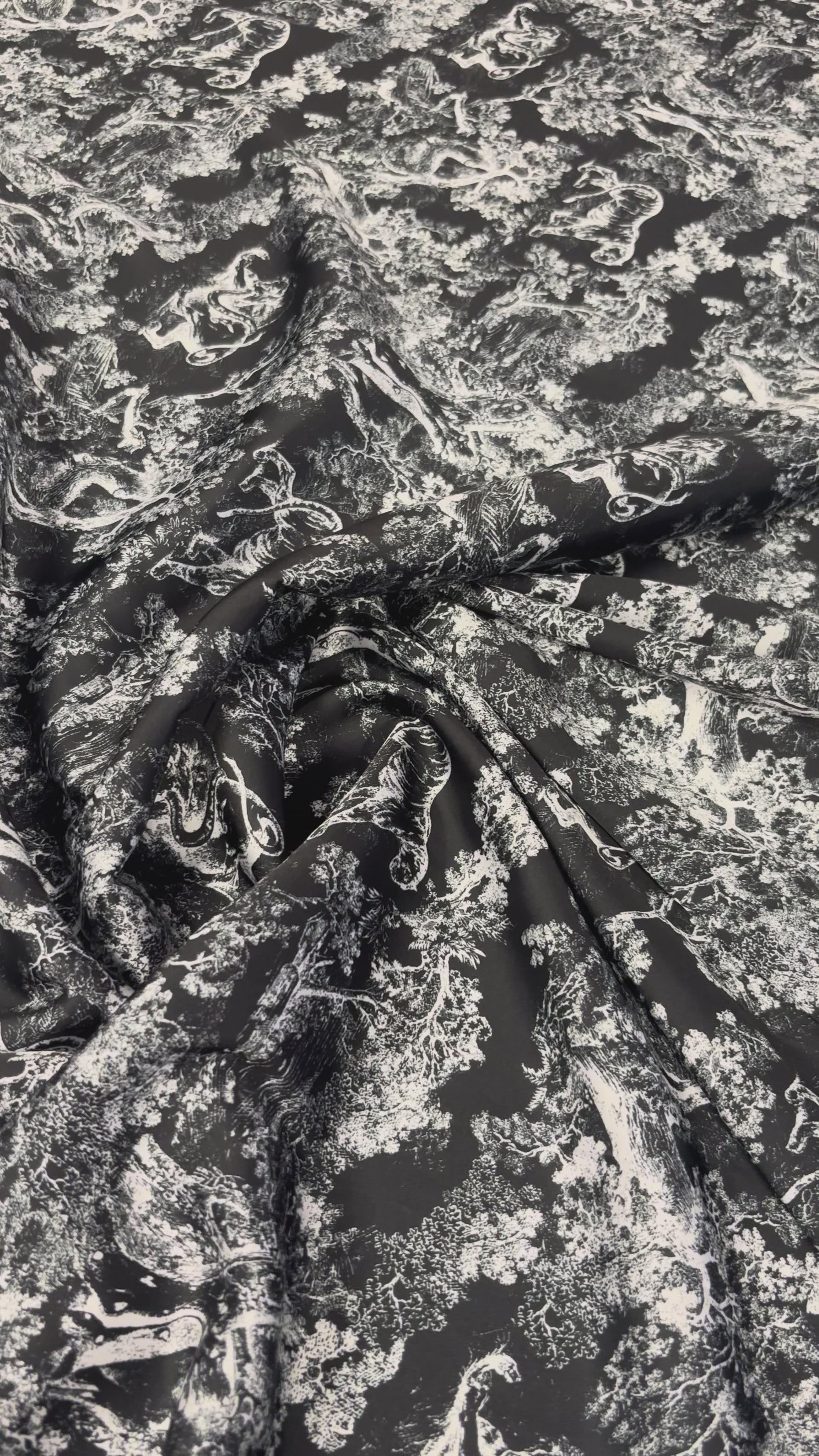 Black & White Satin Fabric by the Metre – Toile de Jouy Scenic