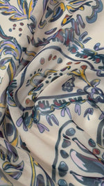 Elegant blue paisley print fabric with a smooth soft drape. Ideal for dresses, blouses, skirts and stylish sewing projects, offering a timeless and refined look.