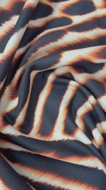 Striking brown and black animal print upholstery fabric with a bold, textured look. Perfect for chairs, cushions, headboards and statement interior décor projects. Durable finish. Sold by the metre.