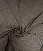 Luxurios deep brown zebra print satin fabric - soft, glossy and stylish. Ideal for dresses, skirts and elegant fashion projects.