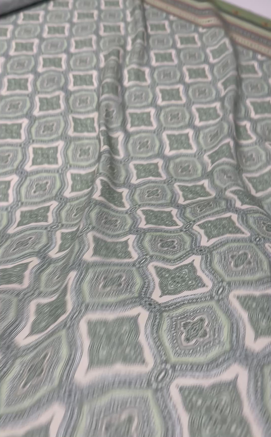 Stylish geometric print linen fabric with decorative border. Lightweight, breathable and easy to sew — ideal for dresses, tops, skirts and home décor projects.Sold by the metre.