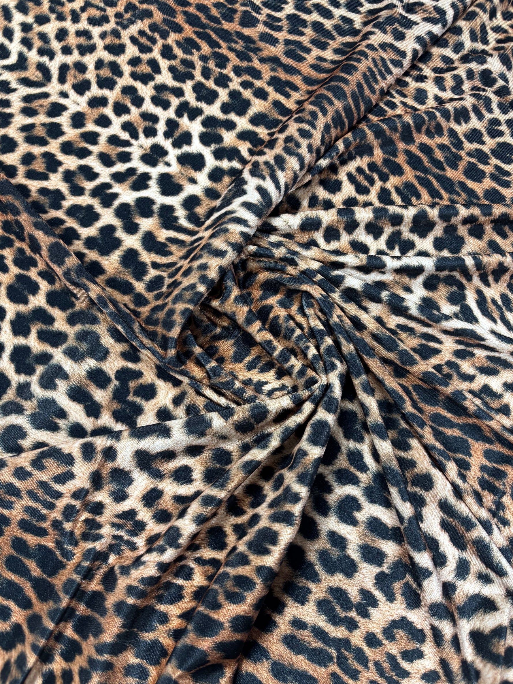 With a generous width of 150 cm, this fabric provides ample coverage for various sewing projects. Elevate your wardrobe or home decor with the timeless appeal of this eye-catching leopard print.