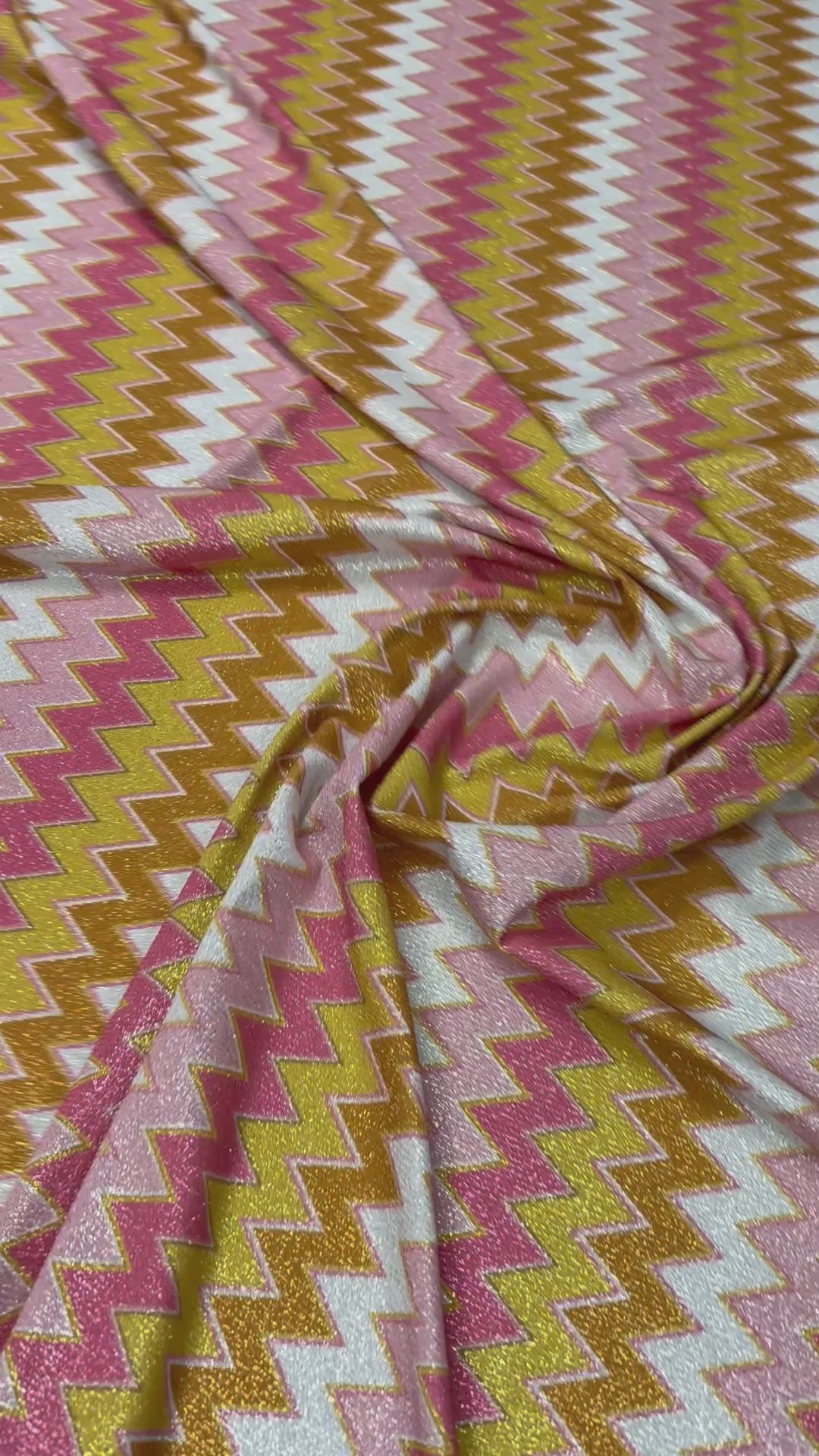 Sparkling metallic lurex fabric with chevron pattern. Soft stretch, elegant drape and eye-catching shimmer — perfect for dresses, skirts, partywear and crafts.