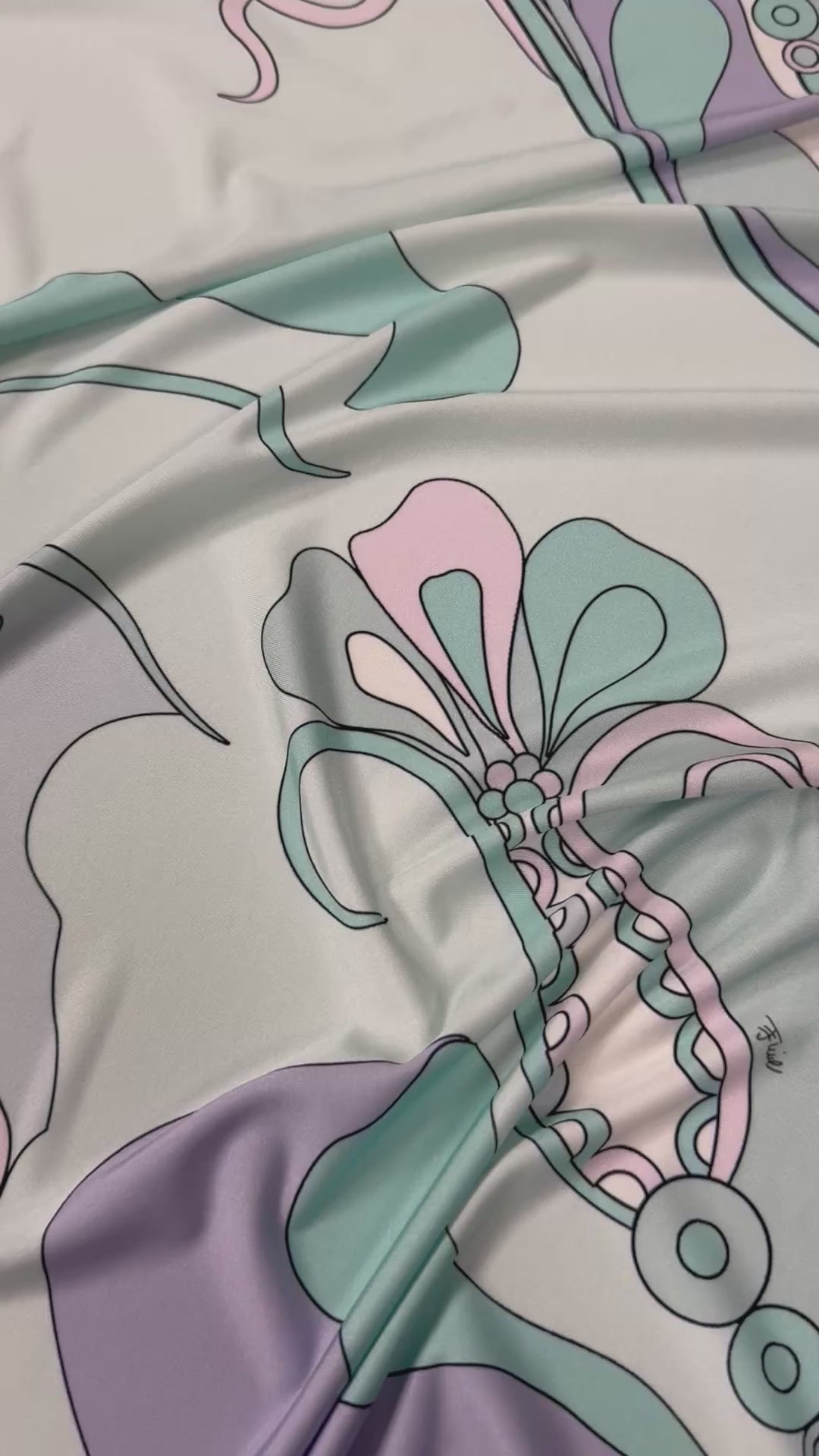 Pastel abstract floral spandex fabric with smooth stretch and elegant drape. Ideal for dresses, tops, dancewear and creative sewing projects. Sold by the metre.