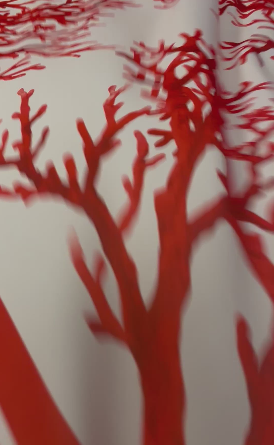 Red Coral Print Crepe Fabric by the Metre. Sold by the metre, ideal for dressmaking, blouses, skirts and elegant fashion projects.