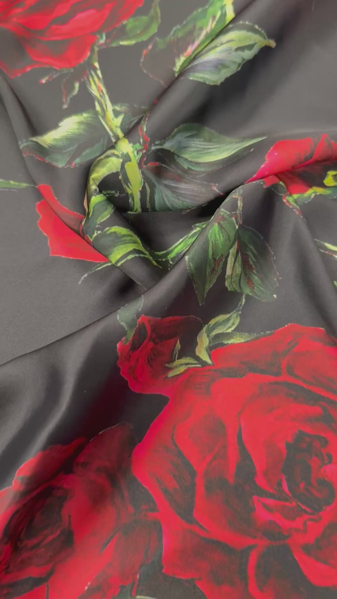 Elegant satin fabric with vibrant red rose print. Smooth, lightweight and perfect for dresses, blouses and eveningwear. Sold by the metre with a fluid drape.Technical Details