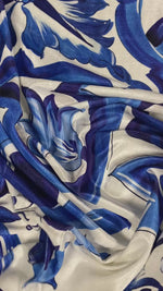 Luxurious royal blue velvet fabric with ornate baroque pattern. Perfect for statement dresses, upholstery or elegant décor projects.