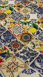 Sicilian Tile & Lemon Print Crepe Fabric by the Metre – Mediterranean Style