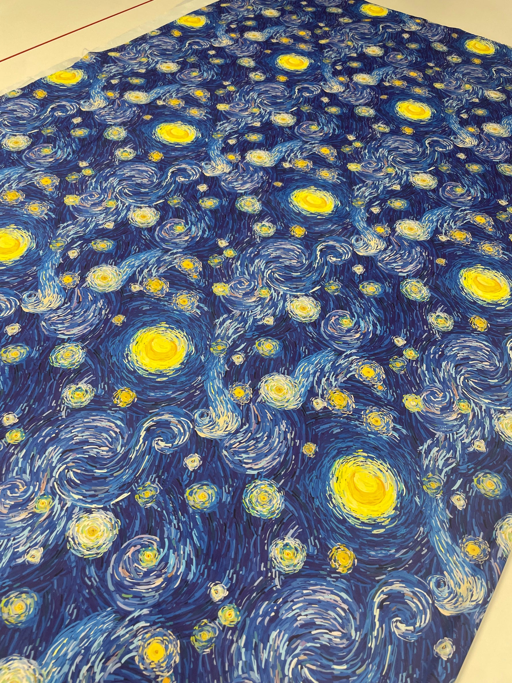 Starry Night Crepe Fabric by the Metre – Artistic Print