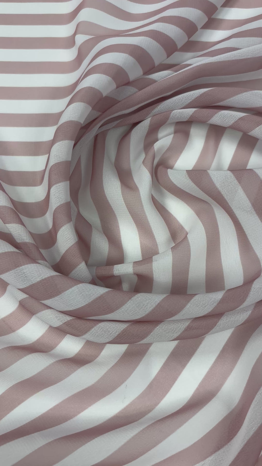 Lightweight striped chiffon fabric with a soft, airy drape. Perfect for dresses, blouses, scarves and elegant sewing projects with a delicate flowing finish. Sold by the metre.