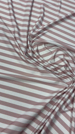 Soft striped spandex fabric with smooth stretch and flexible drape. Ideal for dresses, skirts, tops, activewear and modern sewing projects with comfort and style. Sold by the metre.