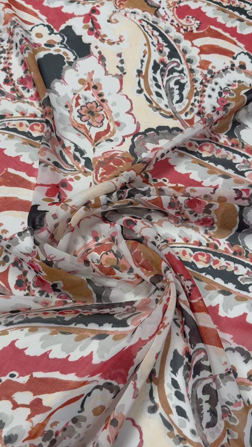 Warm-toned paisley print fabric with a smooth, soft drape. Ideal for dresses, blouses, skirts and creative sewing projects, adding an elegant, timeless look.